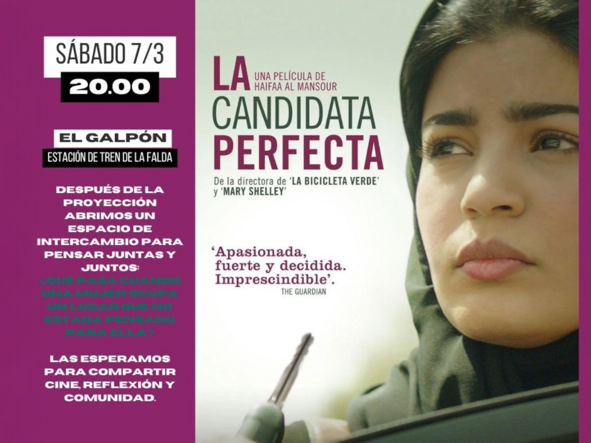 En el marco del Mes de la Mujer, la Biblioteca Popular Babel invita a toda la comunidad a participar de la proyección de la película “La candidata perfecta”, dirigida por la cineasta árabe Haifaa Al-Mansour. La película aborda de manera sencilla y revolucionaria la historia de una mujer que decide postularse, explorando los desafíos y las transformaciones que surgen cuando una mujer ocupa un espacio que tradicionalmente no estaba pensado para ella. Según datos recientes, solo el 25% del cine mundial está dirigido por mujeres, motivo por el cual la Biblioteca eligió poner la mirada en esta perspectiva y fomentar un espacio de reflexión desde la igualdad de género y la representación femenina en la cultura. Luego de la proyección, se abrirá un espacio de intercambio y diálogo, donde los asistentes podrán debatir y compartir opiniones sobre la película y reflexionar juntos acerca de los obstáculos, expectativas y oportunidades que enfrentan las mujeres al ocupar roles de liderazgo o espacios históricamente reservados a los hombres. La actividad se realizará el sábado 7 de marzo a las 20 hs, en El Galpón, ubicado en la estación de tren de La Falda. La entrada será a la gorra y contará con un mini buffet para compartir entre los asistentes. La Biblioteca Popular Babel invita a vecinas, vecinos y toda la comunidad a sumarse a esta experiencia de cine, reflexión y encuentro comunitario, fortaleciendo la participación y el debate sobre igualdad de género y derechos de las mujeres. Detalles de la película: 🎬 Título: La candidata perfecta (2019, Arabia Saudita) 🎬 Directora: Haifaa Al-Mansour 📅 Fecha: Sábado 7 de marzo – 20 hs 📍 Lugar: El Galpón, estación de tren de La Falda 🎟 Entrada: A la gorra + mini buffet Navegación de entradas La Falda: Vecinos de calle Jorge Newbery reclaman solución al estado de la calzada Accidente vial en la entrada de La Falda genera desvíos de tránsito
