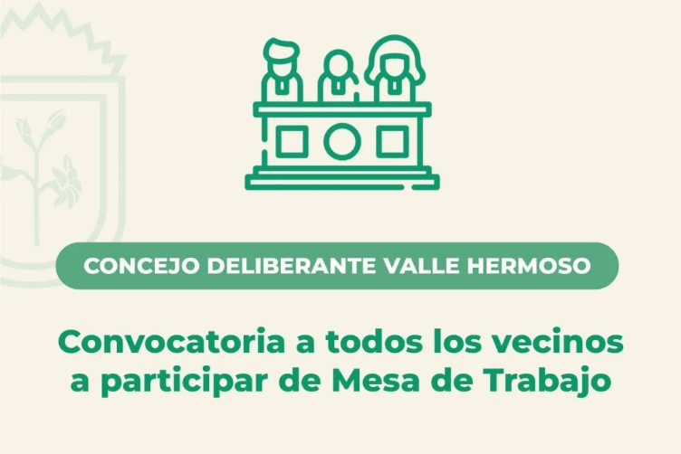 El Concejo Deliberante de Valle Hermoso anunció una invitación abierta a toda la comunidad para participar de una mesa de trabajo en comisión donde se debatirán tres proyectos de ordenanza fundamentales para el desarrollo ambiental y patrimonial del municipio. La jornada tendrá lugar el miércoles 10 de diciembre a las 19 horas en el Centro Cultural de Valle Hermoso, y representa una oportunidad para que los vecinos puedan informarse, opinar y aportar sus miradas sobre iniciativas que marcarán el futuro del pueblo.